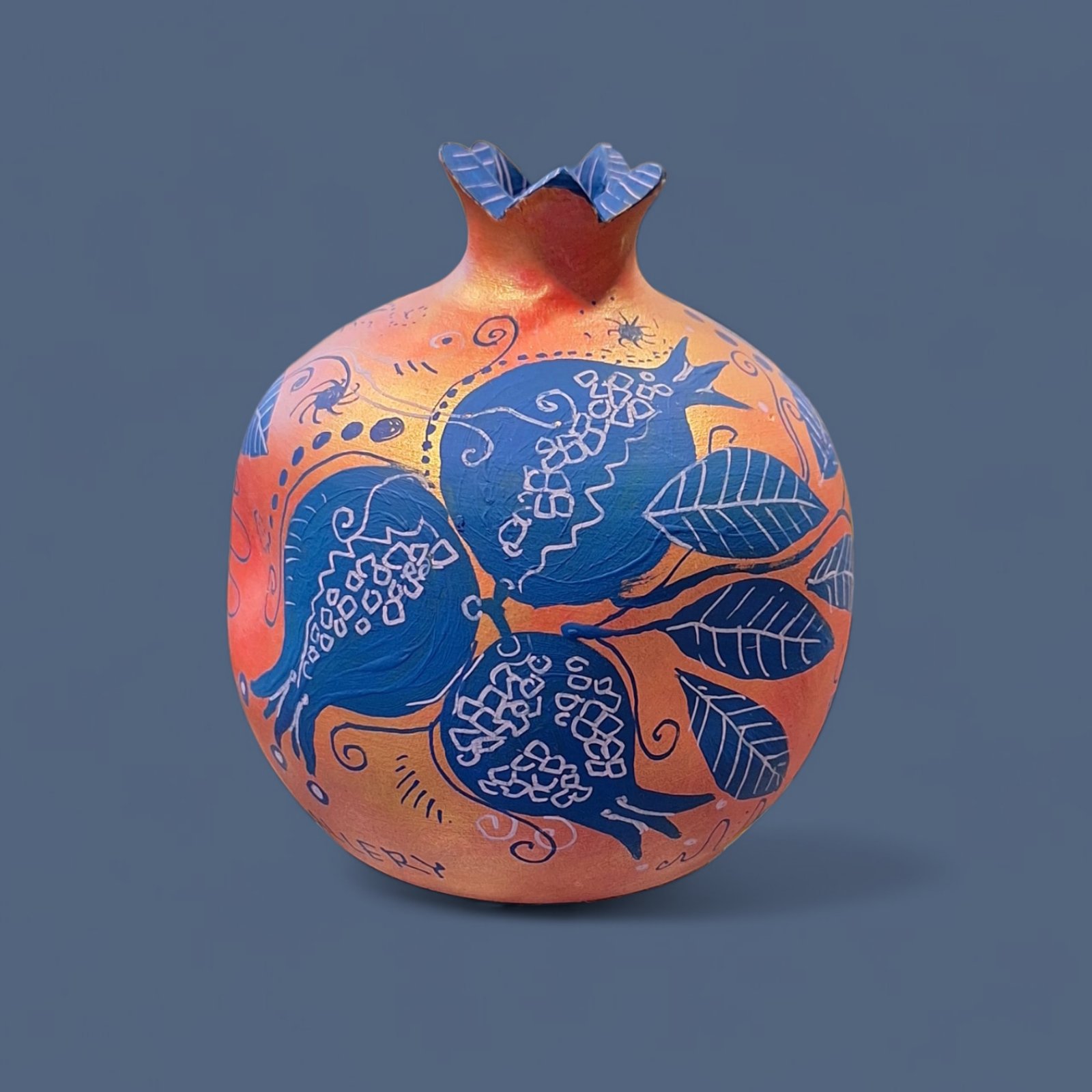 Pomegranate L Blue on orange